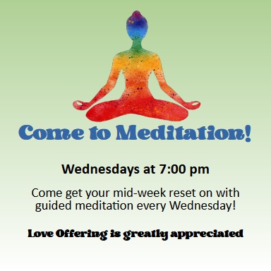 Come join us at 7:00 pm on Wednesdays for guided meditation.